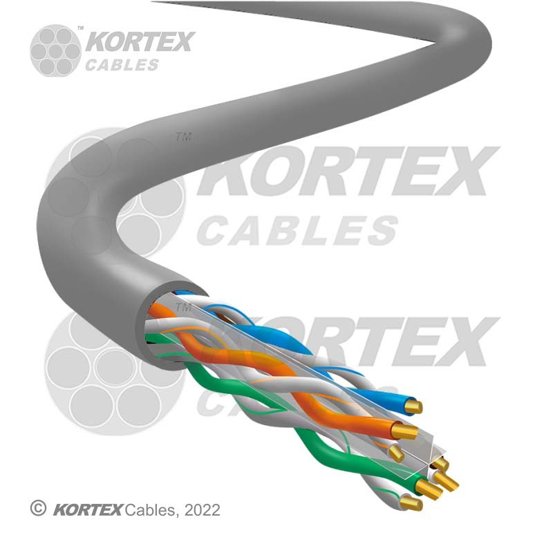 The cable consists of 4 x unshielded twisted pairs 23AWG. with insulated Solid Copper conductors and central 'Spline' to prevent Cross Talk. Comes with PVC outer jacket in Grey.