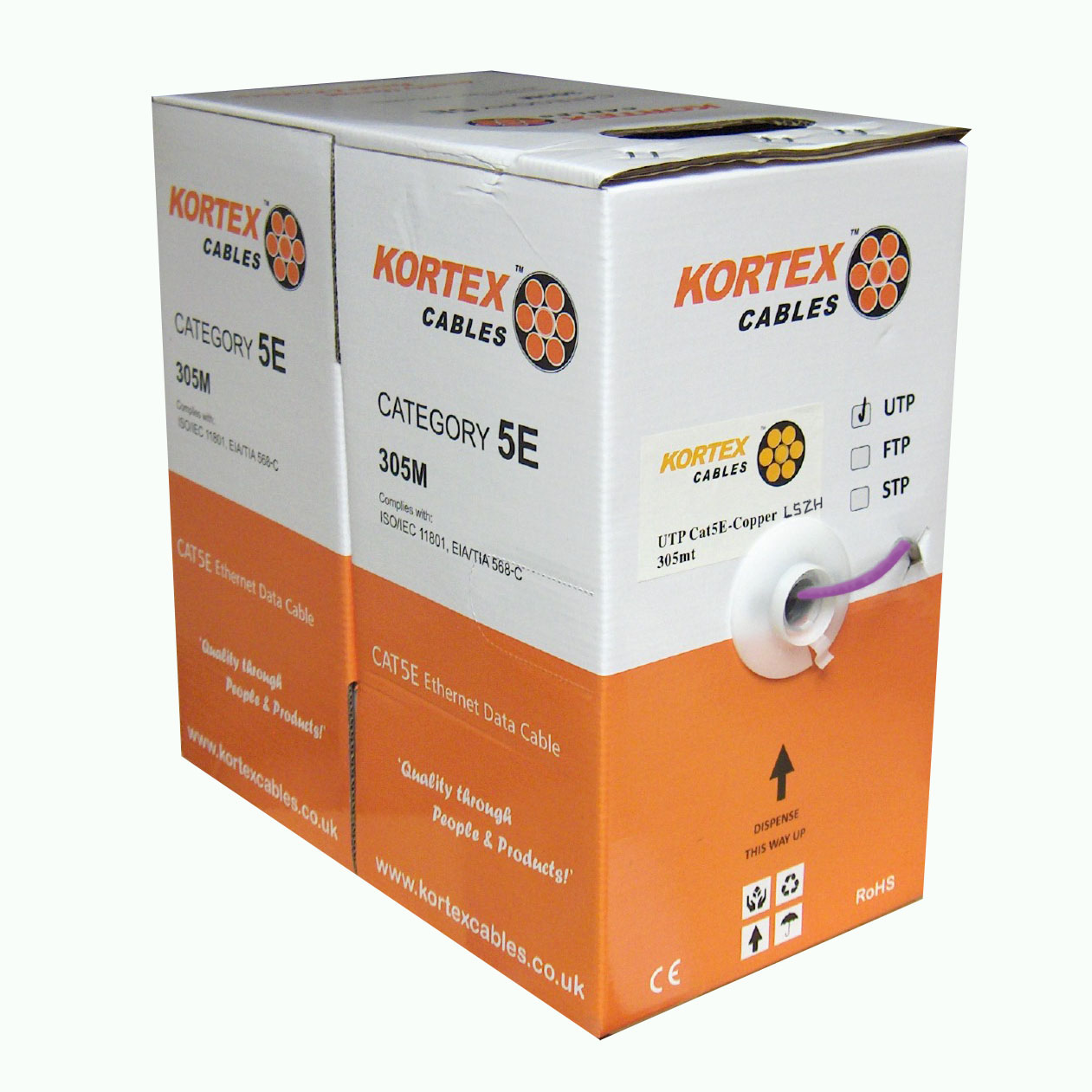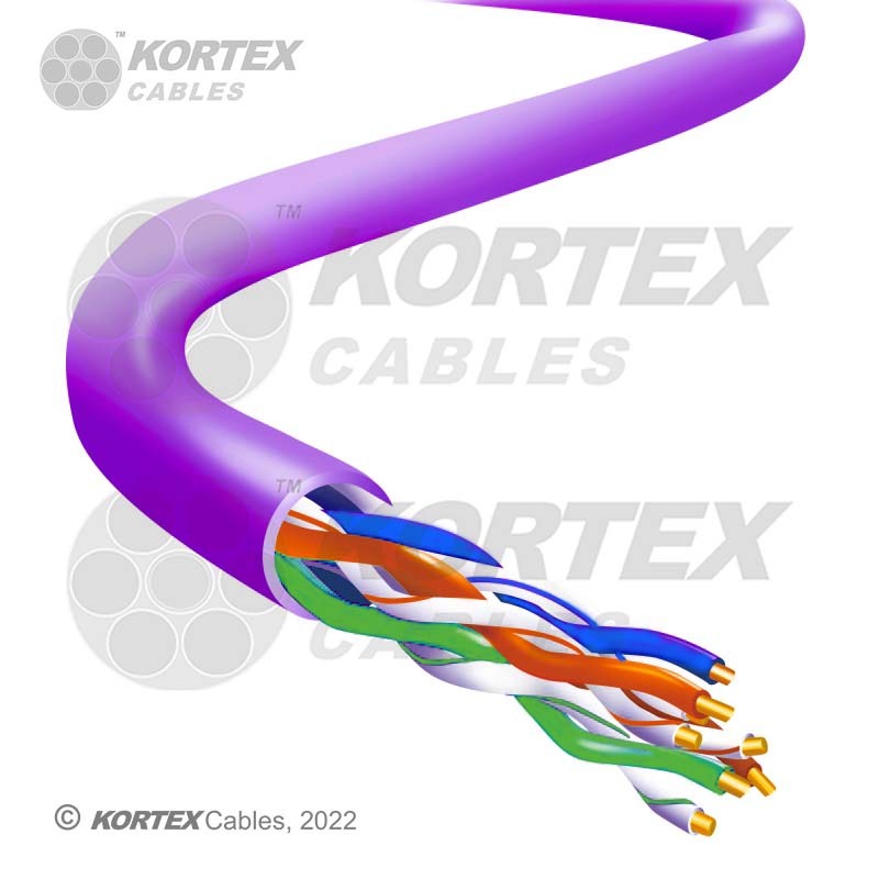 CAT5e Networking cable, 4 x unshielded twisted pair (UTP), 100% Solid Copper Core conductors, Low Smoke (LSZH) Jacket, Purple, 305M.