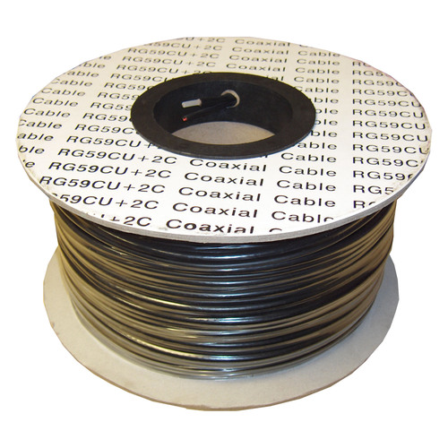RG59+2C Shotgun, Coaxial cable with 2 core attached, suitable for CCTV wiring applications.